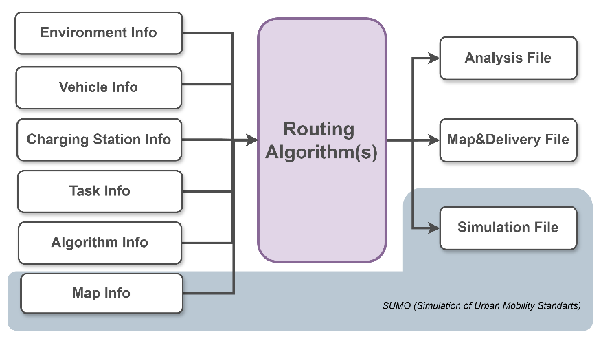 An XML-based RML schema is designed to standardize all information required for route planning by organizing six fundamental input categories; environmental conditions, vehicle characteristics, charging infrastructure, delivery tasks, algorithm configurations, and map-related data under a single structure. The structure is given Figure 5.