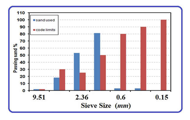 | Sieve size mm | 9.51 | 4.75 | 2.36 | 1.18 | 0.6 | 0.3 | 0.15 |