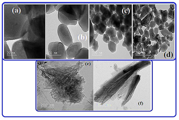 The synthesized nanochromate powder as well as the applied silicate phase were characterized by TEM, and the corresponding images are shown in Figure 8(a-f).
