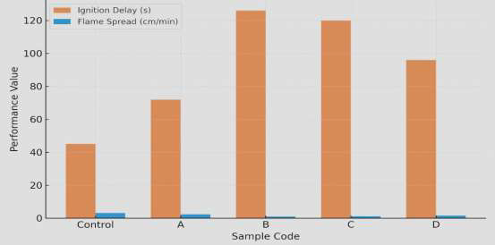 This equation was used to determine the percentage improvement in ignition delay and the percentage reduction in flame spread rate. In this study, \(X\) denotes the specific performance metric considered: ignition delay time (s), flame spread rate (mm/s), or thermal resistance, expressed as heat transfer or temperature change across the coating during thermal exposure.