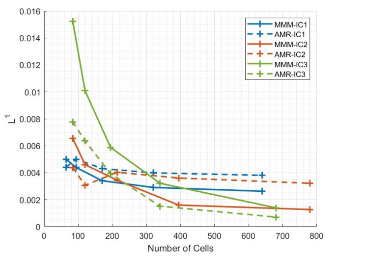 • The MMM method is more sensitive to changes in grid size. By decreasing the grid size, the MMM method achieves higher accuracy compared to the AMR method, while requiring increased computational time.