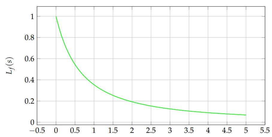 For \(\lambda=1\), \(L_f(s)=1/(1+s)\). Figure 1 shows \(L_f(s)\).